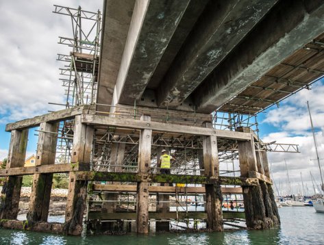 Haslar Bridge is a nine-span post-tensioned bridge in the Gosport tidal estuary, in a Site of Special Scientific Interest (SSSI).