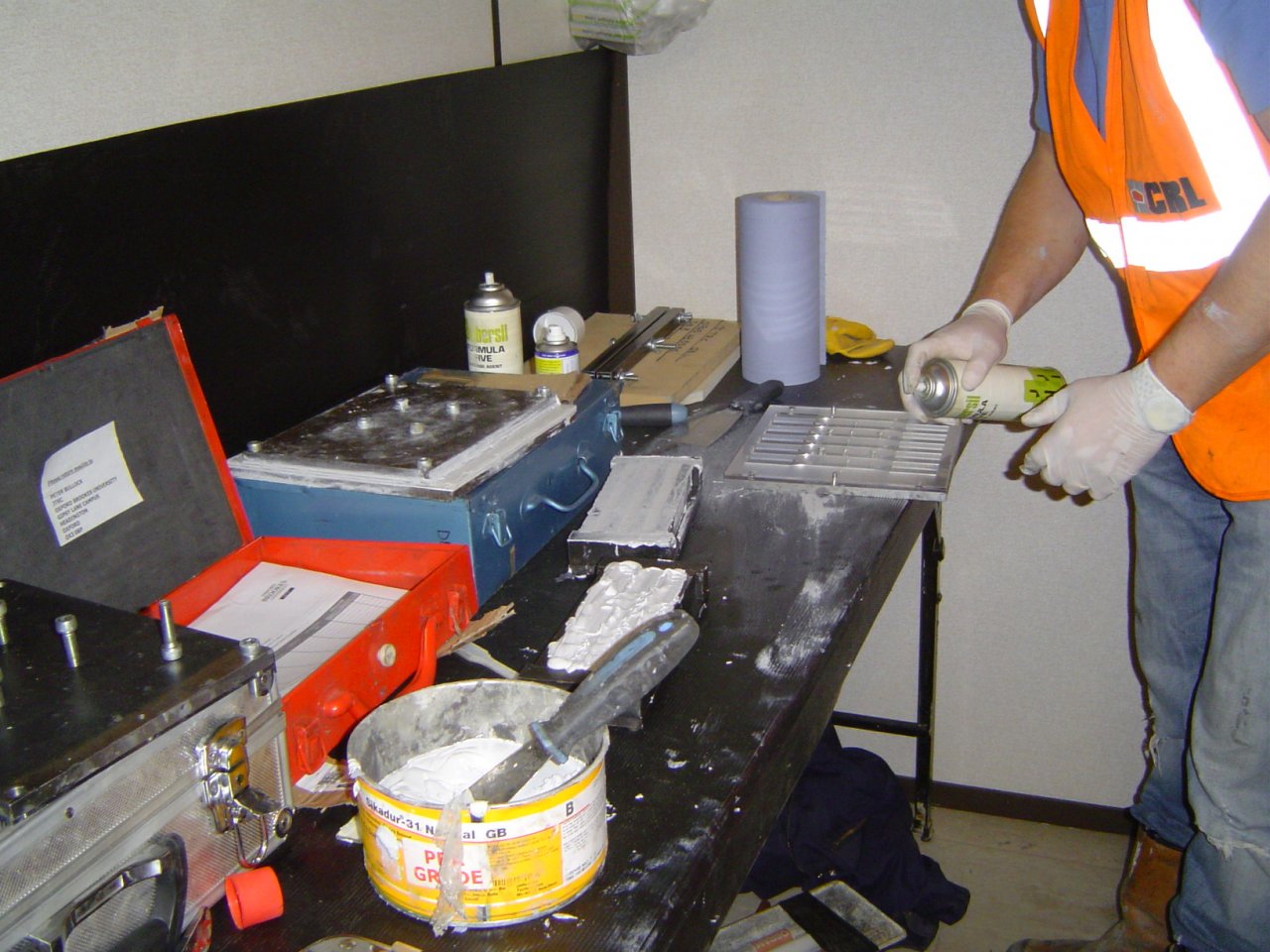 For a successful installation, quality control is essential so test samples of the mixed adhesive resin and shear lap test samples were made on site for testing by Oxford Brookes University. The environmental conditions on site were also constantly monitored and recorded including the humidity and steel surface temperatures. Finally, the installed plates were tap tested to ensure there were no voids in the adhesive bond.