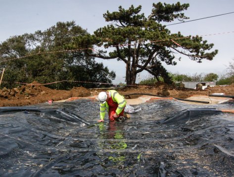 The buried reservoir required full internal and external refurbishment during a 6-week outage in the winter. The roof was exposed by removing the 0.5m deep topsoil and overburden using a long reach excavator; this was originally specified for removal by hand, a slow and costly exercise. However, CRL was able to demonstrate that the topsoil and overburden could be removed mechanically, a method which would significantly reduce the project cost and programme time.